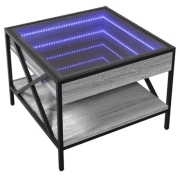 vidaXL Couchtisch mit Infinity-LED, Beistelltisch mit Metallfüße, Kaffeetisch für Wohnzimmer, Sofatisch Teetisch, Grau Sonoma Holzwerkstoff