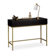 Relaxdays Konsolentisch mit 2 Schubladen, Metallgestell, große Tischplatte, H x B x T: 80,5 x 110 x 40 cm, schwarz/gold