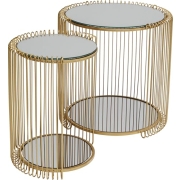 Kare Design Beistelltisch Wire Double (2-Set), Brass, Durchmesser 45cm, Elegant, Wohnzimmertisch, Couchtisch, Stahlgestell, Sofatisch, Spiegeltisch, 46x45x45 cm (H-B-T)