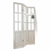 Loberon Paravent Torbin, Nostalgischer Landhaus-Stil, Aufwendiges Antik-Finish, Edler Vintage-Charme, Raumteiler, Raumtrenner, Kiefernholz, Glas, Creme