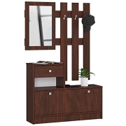 2-teiliges Garderoben-Set: Das elegante Garderoben-Set besteht aus einer Schuhkommode mit Aufsatz + Schublade und einem Garderobenpaneel mit Spiegel. Das Garderobenpaneel verfügt über 3 Doppel-Haken…