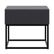Der Nachttisch Veldio kombiniert Minimalismus mit einem Designer-Akzent durch moderne Lamellen. Die gefräste Front verleiht ihr einen einzigartigen Charakter! Die großzügige Schublade bietet…