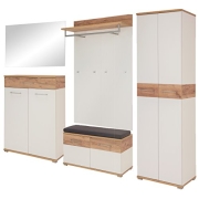 montierte Maße BxHxT ca.: 280 x 199 x 40 cm Dekor: Weiß / Navarra-Eiche-Nachbildung bestehend aus: 1x Garderobenschrank 3774-513, 1x Spiegel 3771-84, 1x Schuhschrank 3770-513, 1x Garderobenpaneel…