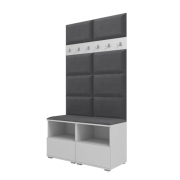 RAVIO Garderoben-Set NELA III mit Gepolstertes Paneel/Wandpaneel, Wand-Garderobe mit Zwei Schuhschränke, 100cm Flurgarderobe, Kompaktgarderobe (Weiß + Dunkelgrau (Trinity 15))