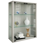 VCM Glasvitrine hängend | Vitrine Glas mit ESG-Sicherheitsglas | Maße: H. 80 x B. 60 x T. 25 cm | Hängevitrine Glas | Modern und platzsparend | Glas Vitrinenschrank - Udina Silber