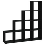 vidaXL Treppenregal, Bücherregal mit 10 Fächern, Raumtrenner Regal für Büro Wohnzimmer, Stufenregal Raumteiler, Modern, Schwarz Holzwerkstoff
