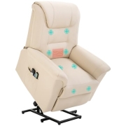 HOMCOM Fernsehsessel mit Aufstehhilfe Elektrisch Relaxsessel mit Liegefunktion, Heiz- und Massagefunktion, Massagesessel TV-Sessel mit Seitentasche und Fernbedienung, Kunstleder, Cremeweiß