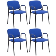 CLP 4er Set Besucherstühle Ken Pro Stoff Mit Gepolsterten Armlehnen Und Stoffbezügen I Polsterstühle Mit Metallgestell, Farbe:blau