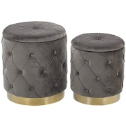 Runder Pouf im 2er Set Samt grau Ottoman Sitzpouf Chesterfield Stil Pueblo