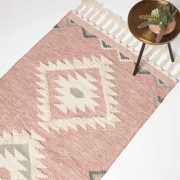 Homescapes Pali Kelim Teppich mit Fransen rosa-grau 120x170 cm, handgewebter Teppich, Fransen-Teppich Wolle
