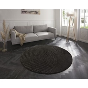 Mint Rugs Teppich Fergus Rund Hochflor Wohnzimmer-Teppich Weich Flauschig Langflor Shaggy Flokati Skandi Design für Küche Flur oder Schlafzimmer Hoch-Tief Struktur Dunkelgrau ø160 cm