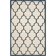 SAFAVIEH Geometrisch Teppich für Wohnzimmer, Esszimmer, Schlafzimmer - Cambridge Collection, Kurzer Flor, Elfenbein und Marineblau, 122 X 183 cm