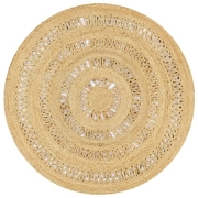 vidaXL Teppich Handgefertigt mit Spiralen-Design Wohnzimmerteppich Jute Teppich Kurzflor Handwebteppich Naturteppich Geflochten Weiß 120 cm