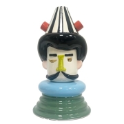 Ausgefallene Deko-Vase aus Keramik in Form einer Männerbüste mit kräftigen Farben und Goldakzenten Mit abstrakten, geometrischen Formen setzt die Büste einen Akzent auf Kommoden und Sideboards…