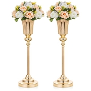 NUPTIO Mittelstück Vase Gold Hochzeit 2 Stück 54,6 cm hohe Metall Trompetenvasen für Tischdekorationen Gold Blumenständer für Party