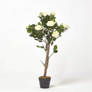 Homescapes Kunstbaum Kunstpflanze Weiße Rosen Rosenbaum 90 cm hoch