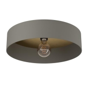 Die runde Aufbau-Lampe mit rundem Lampenschirm aus Metall in Umbragrau harmoniert insbesondere mit modernen Einrichtungsstilen Die Innenseite ist mit einer Dekorplatte ausgestattet, die sich in zwei…