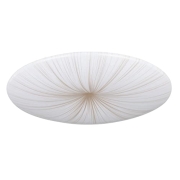 Die runde LED Aufbau-Lampe aus Metall und einem Cover aus Kunststoff mit einem Linien-Muster in Weiß und Goldfarben streut das Licht breit und angenehm in den Raum und lässt bei Bewegung einen…