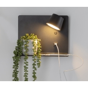 Slimme Solution Wandlamp in metaal zwart met aansluiting voor USB voor het opladen van jouw tablet en/of smartphone. De wandlamp is ook een handige wandplank / fotoplank voor kleine voorwerpen.Dit…