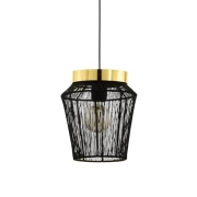 Die Pendelleuchte aus einem handgearbeiteten Draht-Schirm in Schwarz mit einem Metall-Aufsatz in Messing-Gebürstet und einem schwarzen Textilkabel fügt sich nahtlos in den modernen Trend ein Wenn die…