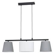 EGLO Pendellampe Almeida 1, 3 flammige Textil Pendelleuchte, Hängeleuchte aus Stahl und Stoff, Farbe: Schwarz, grau, weiß, Fassung: E14, L: 860 mm