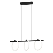 EGLO LED Hängelampe Caranacoa, Pendelleuchte Esstisch 3-flammig, Esszimmerlampe aus Metall in Schwarz mit Ringen aus Kunststoff in Weiß, Hängeleuchte warmweiß