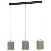 EGLO Hängelampe Barlaston, 3-flammige Pendelleuchte über Esstisch, Esszimmerlampe aus Textil in Grau und Metall in Schwarz, Hängeleuchte mit E27 Fassung, 88 cm