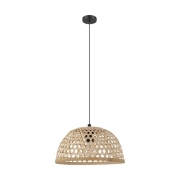 EGLO Pendelleuchte Claverdon, 1 flammige Hängelampe Vintage, Natur, Boho, Hygge, Hängeleuchte aus Stahl, Holz in Schwarz, Naturfarben, Esstischlampe, Wohnzimmerlampe hängend mit E27 Fassung, Ø 37 cm