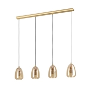 EGLO Hängelampe Alobrase, 4-flammige Pendelleuchte Esstisch, Hängeleuchte aus Metall in Messing gebürstet und bedampften Glas in amber, Esszimmerlampe hängend, E27 Fassung, 108 cm