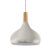 Dank des schlichten Designs harmoniert die Leuchte mit nahezu jedem Stil, ob Vintage, Modern, Retro oder Industrial Style Der moderne Materialmix aus dem massivem, hellen Echtholz sowie silber…