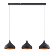 Trendiges Design in Schwarz und Gold! Diese 3 flammige Hängelampe bringt pure Eleganz und schönstes Licht in deine vier Wände. Drei moderne, halbkugelförmige Schirme außen mattes Schwarz und innen…