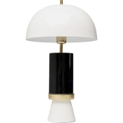 Stilvolles Design: Große Tischlampe in Schwarz-Weiß – Elegante Lampe mit rundem Schirm, perfekt für Sideboards, Nachttische oder Beistelltische; maße 51 x 30 x 30 cm (H/B/T) Hochwertige Verarbeitung…