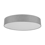 Die runde Smart Home LED Deckenleuchte aus weißem Stahl sowie einem Körper aus grauem Textil und einer LED Abdeckung aus Kunststoff in Weiß fügt sich nahtlos in den modernen Trend ein Die…