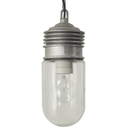 Stoere compacte hanglamp, de bovenzijde is vervaardigd uit aluminium waaronder een glazen kelk zit. De kettinglamp wordt standaard geleverd met een ketting van 50cm en een aluminium plafondplaat (…