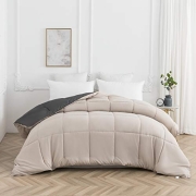 QZY Bettdecke - Quilted Steppbettdecke antiallergisch für Allergiker 100% Microfaser Ganjahresdecke 220 x 240 cm Double Face Beige/Grau