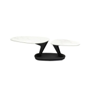 Couchtisch in schwarz und weiß mit zwei Ablageflächen 42x150x58cm (H/B/T) Hell marmorierte, edle Tischplatten aus widerstandsfähiger und pflegeleichter Keramik Beide organisch geformten Platten…
