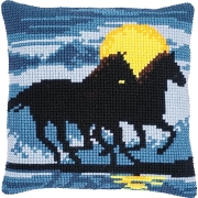 Vervaco Kreuzstich Stickpackungen Kissen Stickerei Set Anfänger Vorgedruckt Pferde im Mondlicht DIY Set Kreativ Set Für Erwachseneca. 40 x 40 cm Bastelset Handwerker Haus Dekoration