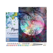 Figured'Art Malen Nach Zahlen Erwachsene Mit Rahmen Vollmond mit bunten Farben - Paint by Numbers Basteln DIY Bastelset 40x50cm Leinwand gespannt auf Holzrahmen