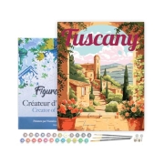 Figured'Art Malen Nach Zahlen Erwachsene Mit Rahmen Reiseposter Toskana in voller Blüte - Paint by Numbers Basteln DIY Bastelset 40x50cm - Leinwand gespannt auf Holzrahmen