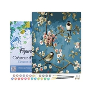 Figured'Art Malen Nach Zahlen Erwachsene Mit Rahmen Blumen und Vögel - Paint by Numbers Basteln DIY Bastelset 40x50cm - Leinwand gespannt auf Holzrahmen