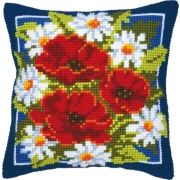 VERVACO Kreuzstich Stickpackungen Kissen Stickerei Set Anfänger Vorgedruckt Rote Blumen DIY Set Kreativ Set Für Erwachsene Dekoratives Kissen ca. 40 x 40 cm Bastelset Handwerker Haus Dekoration