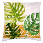VERVACO Kreuzstich Stickpackungen Kissen Stickerei Set Anfänger Vorgedruckt Planzenblätter DIY Set Kreativ Set Für Erwachsene Dekoratives Kissen ca. 40 x 40 cm Bastelset Handwerker Haus Dekoration