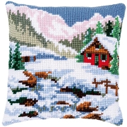 Vervaco Kreuzstich Stickpackungen Kissen Stickerei Set Anfänger Vorgedruckt Winterlandschaft DIY Set Kreativ Set Für Erwachsene Dekoratives Kissen ca. 40 x 40 cm Bastelset Handwerker Haus Dekoration
