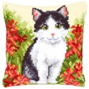 VERVACO Kreuzstich Stickpackungen Kissen Stickerei Set Anfänger Vorgedruckt Katze in Blumen Feld DIY Set Kreativ Set Für Erwachseneca. 40 x 40 cm Bastelset Handwerker Haus Dekoration
