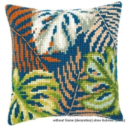 Vervaco Kreuzstich Stickpackungen Kissen Stickerei Set Anfänger Vorgedruckt Blätter DIY Set Kreativ Set Für Erwachsene Dekoratives Kissen ca. 40 x 40 cm Bastelset Handwerker Haus Dekoration