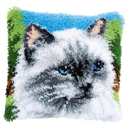 Vervaco Knüpfkissen Set Deko Kissenbezug Knüpfset für Anfänger SILVER CAT Basteln Erwachsene Kreativ DIY Handarbeit Kissen zum Selber Knüpfe 40 x 40 cm Latch Hook Kit Knüpfhaken Set Kissen