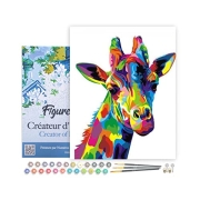 Figured'Art Malen Nach Zahlen Erwachsene Mit Rahmen Giraffe Pop Art - Paint by Numbers Basteln DIY Bastelset 40x50cm Leinwand gespannt auf Holzrahmen
